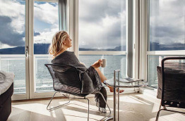 Profitez de votre soirée libre pour explorer les environs à pied, et si les cieux nocturnes sont clairs et scintillants, soyez à l’affût des superbes aurores boréales qui viennent danser au-dessus du fjord.