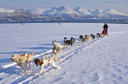 Depuis Tromso, longez le fjord pendant environ 25 minutes pour rejoindre la base de départ de votre expédition. Profitez de la vue imprenable sur Tromso et les paysages côtiers. Après avoir reçu les consignes de sécurité, l’aventure peut commencer ! Laissez-vous glisser sur les chemins enneigés tirés par les chiens. Profitez de cette incroyable aventure d’une heure pour admirer les paysages environnants, entourés par des montagnes blanches et de longs fjords. Une fois la course terminée, de retour à la ferme, n’oubliez pas le moment de complicité avec vos chiens pour les remercier de cette belle balade, et de câliner les adorables chiots. L’excursion se termine par la dégustation d’un plat typique sami, le « bidos », ragoût à base de carottes, de pommes de terre et de viande de renne, mitonné à petit feu, suivi d’un gâteau au chocolat et d’un café. Retour à Tromso.