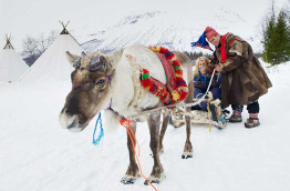 Prise en charge à Tromso pour un court trajet jusqu’au camp de rennes où vous attend votre guide sami. Embarquez à bord d’un traîneau tiré par un renne, et laissez-vous glisser sur les chemins enneigés entourés de montagne. Cette petite balade de 45 minutes n’offre pas de sensations fortes mais elle est très dépaysante. Ce mode de transport ancestral est utilisé dans le Nord et fait partie de la culture samie. Au retour, visitez le camp et nourrissez le troupeau qui compte environ 300 rennes, avant de vous essayer au lancer de lasso. Cette technique, toujours utilisée aujourd’hui, sert à attraper les rennes afin de les rassembler avant le marquage ou pour l’abattage. Rejoignez ensuite une tente « lavvu », tente traditionnelle samie où vous savourerez un repas typique en écoutant avec beaucoup d’émotion les « joiks », des chants ancestraux lapons. Cette expérience culturelle vous en apprendra davantage sur la culture, les traditions et l’histoire de ce peuple autochtone, considéré comme le dernier d’Europe. Un repas chaud vous sera servi vous goûterez au Bithos, un plat traditionnel Sami. Retour à Tromso.