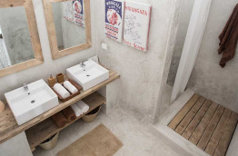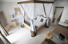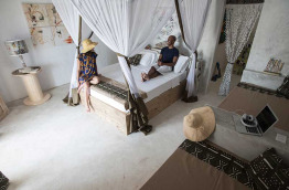 Chaque chambre compte un lit king-size protégé d’une moustiquaire, un ventilateur de plafond et un coffre-fort. Les chambres sont ventilées naturellement, et l’eau est chauffée grâce à des panneaux solaires. Elles disposent de l’accès internet Wi-Fi, et d’une terrasse privée face à la mer et à la piscine, où vous pourrez vous détendre les pieds dans le sable.