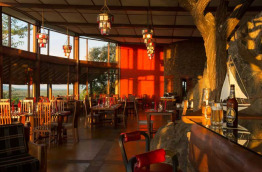 Construit sur le haut d'une colline, le lodges est entièrement tourné vers la plaine et le soleil couchant. Les parties communes consistent en une salle bar et restaurant avec de grandes baies vitrées, entourées d'une vaste terrasse où l'on peut manger dehors.