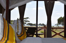 Nuit au Tarangire Simba Lodge. Ce camp de tentes de charme bénéficie d’une vue sur le lac Burunge.