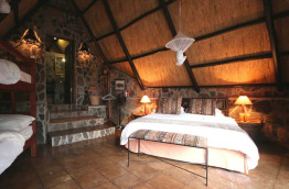 Le Big Cave Camp a été construit au sommet d'un énorme rocher de granit offrant des vues à couper le souffle sur le Parc national de Matobo Hills. L’architecture africaine et sophistiquée du lodge intègre parfaitement ces rochers colossaux et est positionnée au milieu de l'art rupestre Khoisan. Les 7 cottages avec toit de chaume, salle de bains et balcon privé, reflètent la créativité africaine.