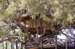 Vous pouvez choisir de passer une nuit dans une cabane dans un arbre située à plusieurs kilomètres du lodge : le confort est sommaire mais l'ambiance est garantie !