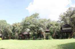 Ivory lodge est construit dans une forêt verdoyante, avec une jolie pelouse qui descend en pente douce vers le point d'eau autour duquel sont disposés partie commune et bungalows en arc de cercle.